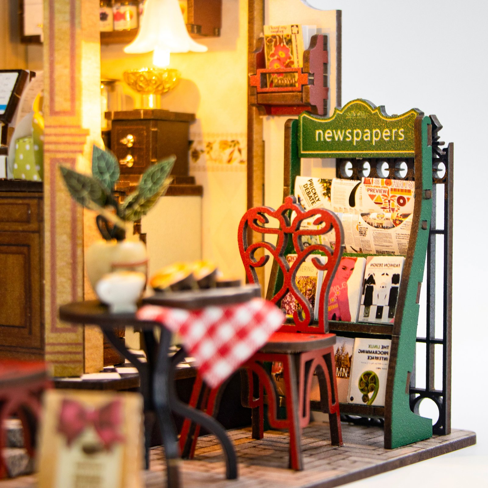Product Size: 22 × 16 × 17.5 cm Main Materials: Plexiglass, MDF Wood, Paper, Fabric Includes: Instruction Manual, Lights, Glue, Battery Holder, Dust Cover & Working Tools AA/AAA battery or button cell required depending on model Product Package Size: 32 × 21 × 5.5 cm Note: This is a DIY (Do It Yourself) product – building/assembly is required.